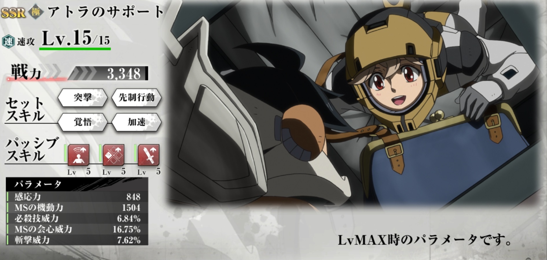 | 戦力 | 3,348 | セットスキル3 | 覚悟 |