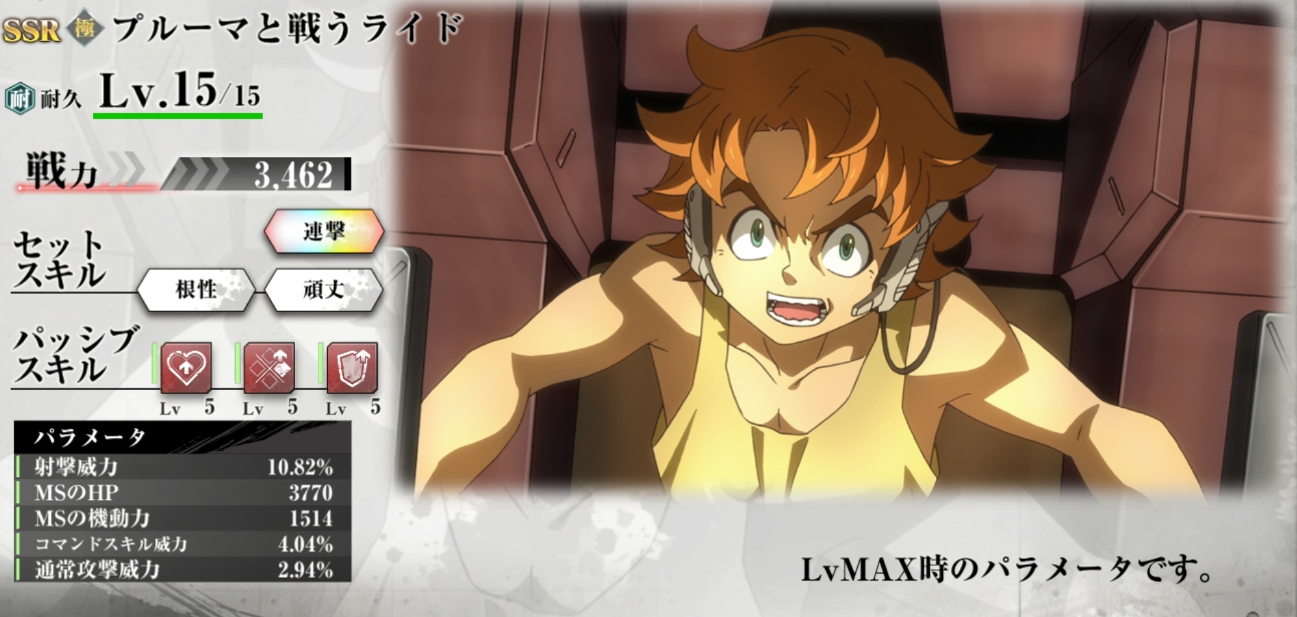 | 戦力 | 3,462 | セットスキル3 | 頑丈 |