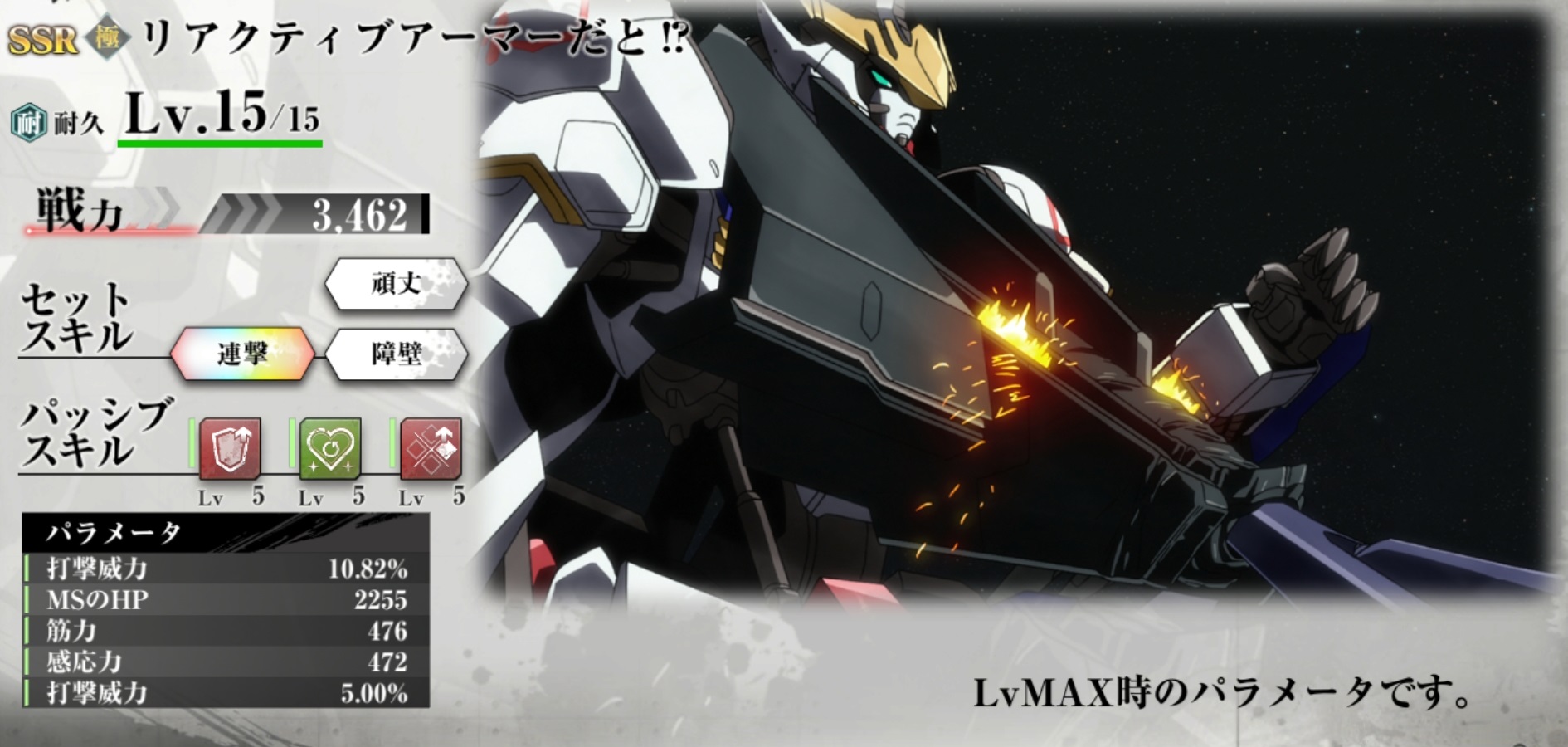 | 戦力 | 3,462 | セットスキル3 | 障壁 |