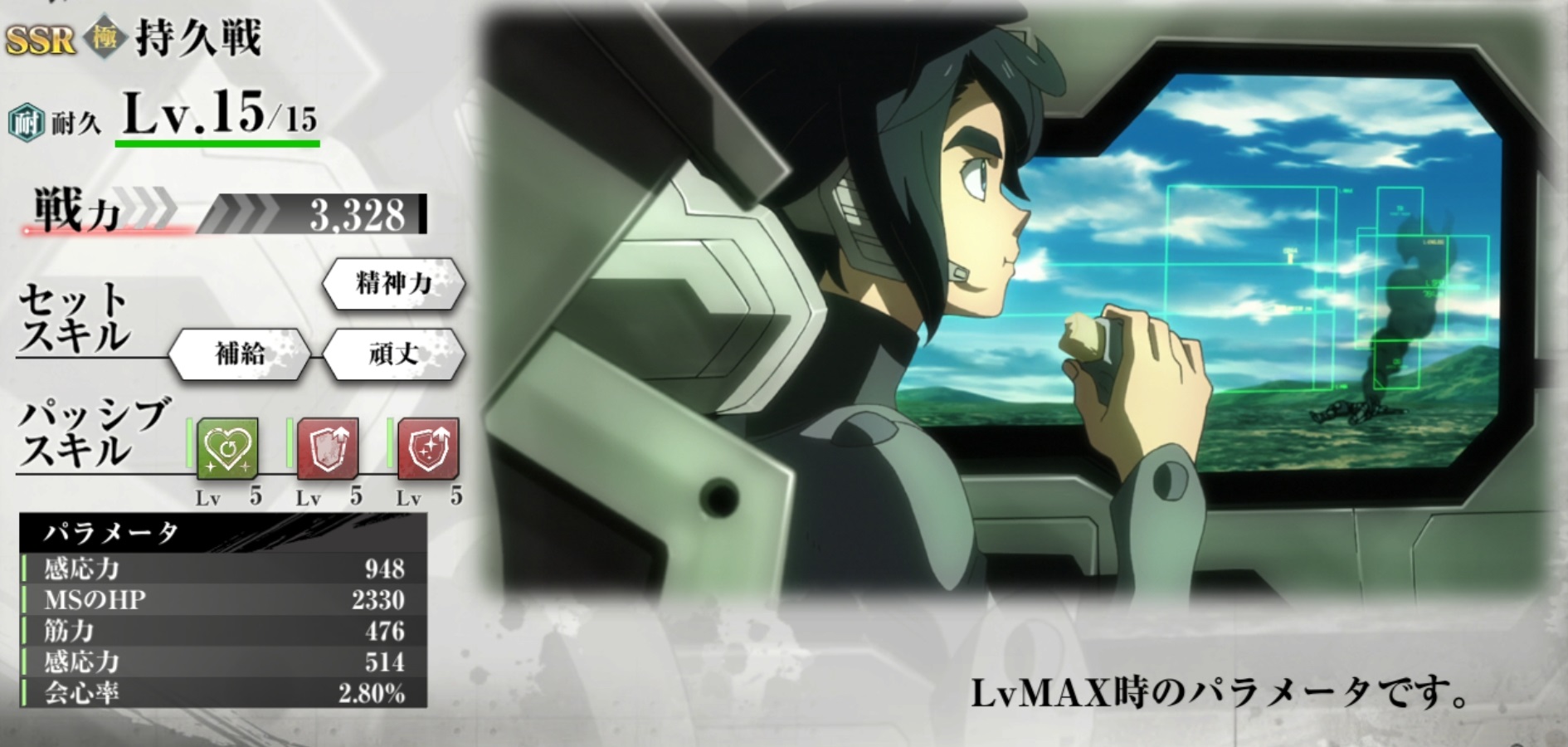 | 戦力 | 3.328 | セットスキル3 | 頑丈 |