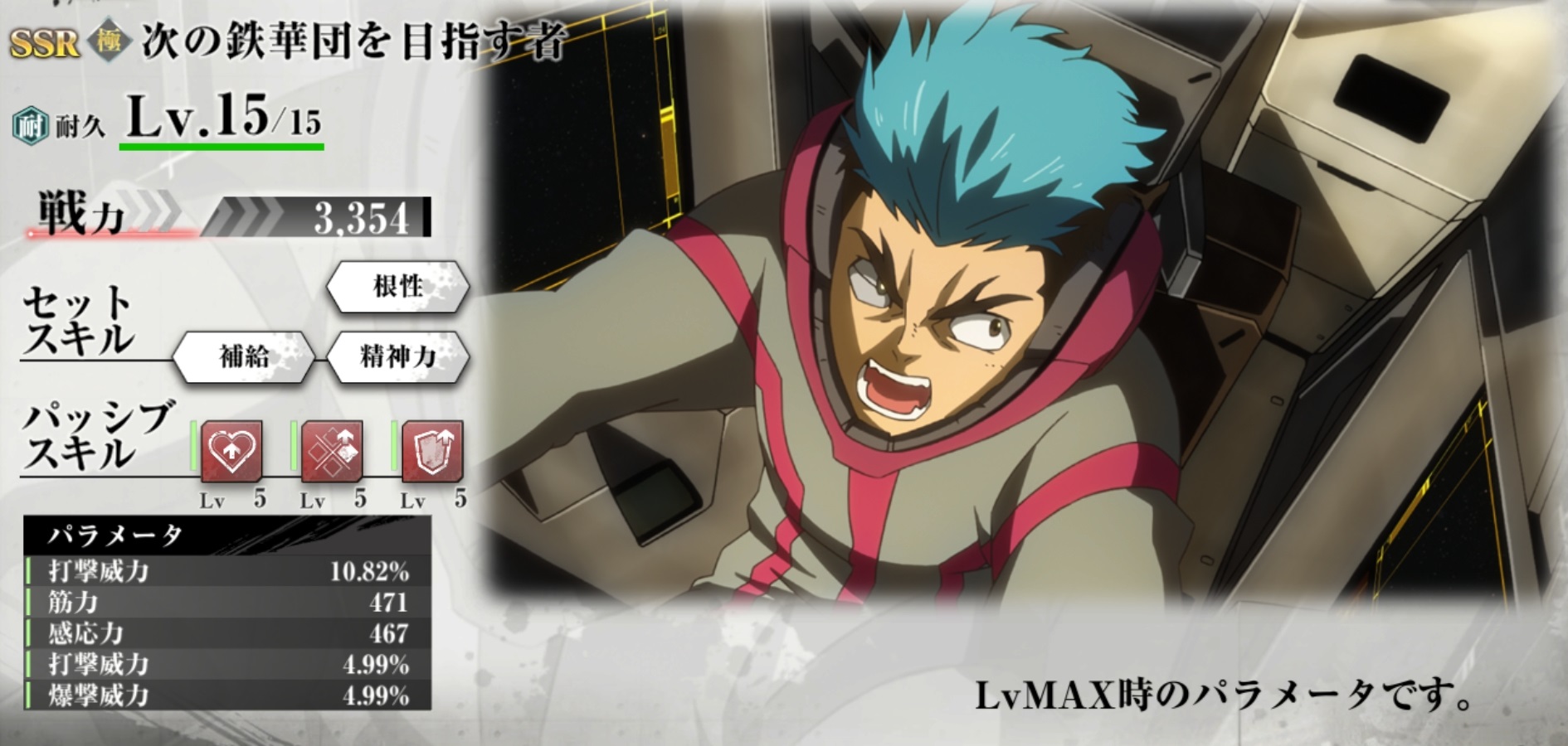 | 戦力 | 3,354 | セットスキル3 | 精神力 |