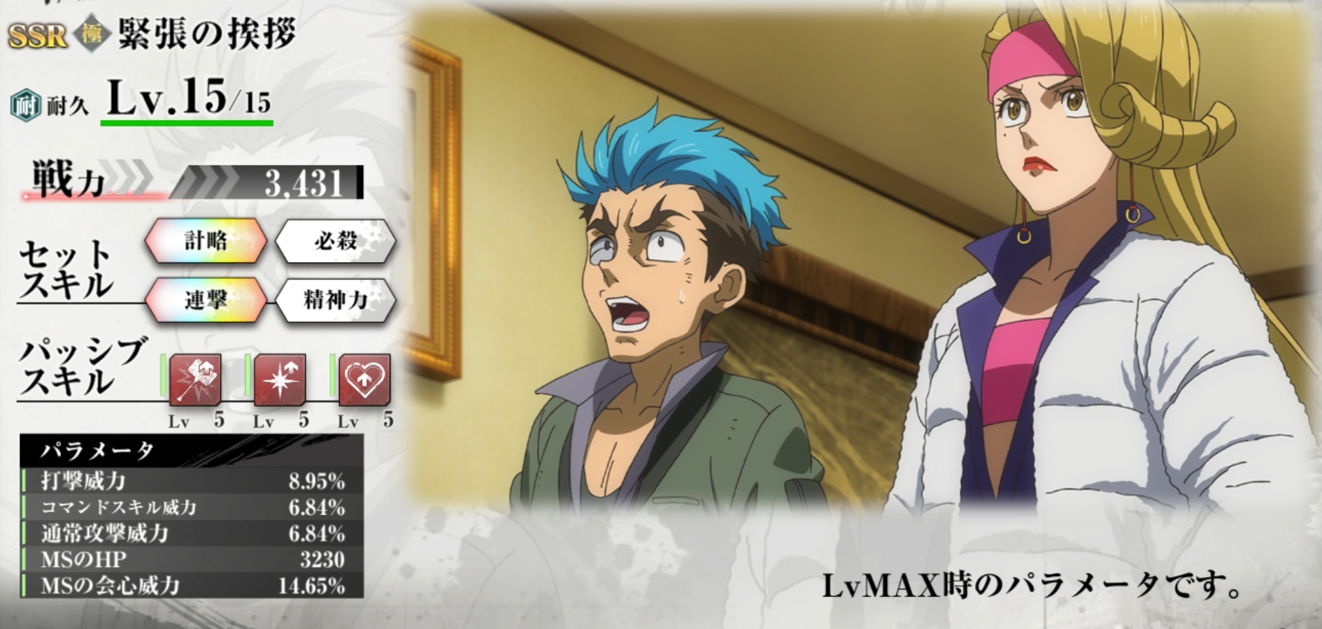 | 戦力 | 3,431 | セットスキル3 | 連撃 |