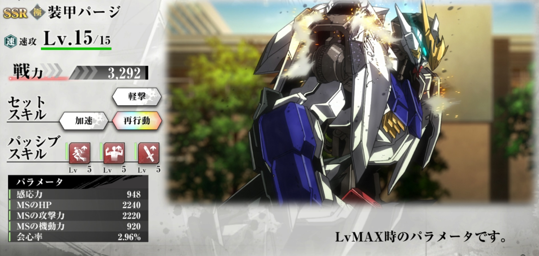 | レアリティ | SSR | セットスキル1 | 軽撃 |