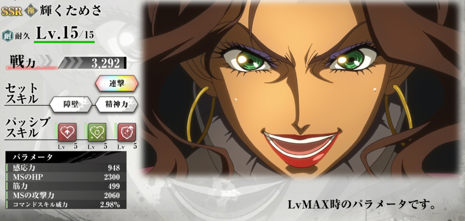| 戦力 | 3,292 | セットスキル3 | 精神力 |