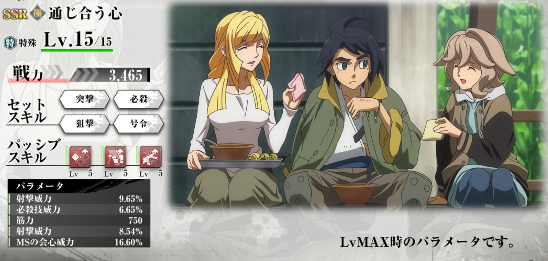 | 戦力 | 3,465 | セットスキル3 | 狙撃 |