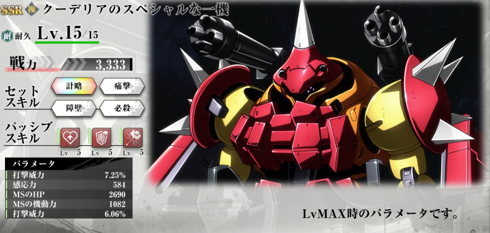 | 戦力 | 3,333 | セットスキル3 | 障壁 |