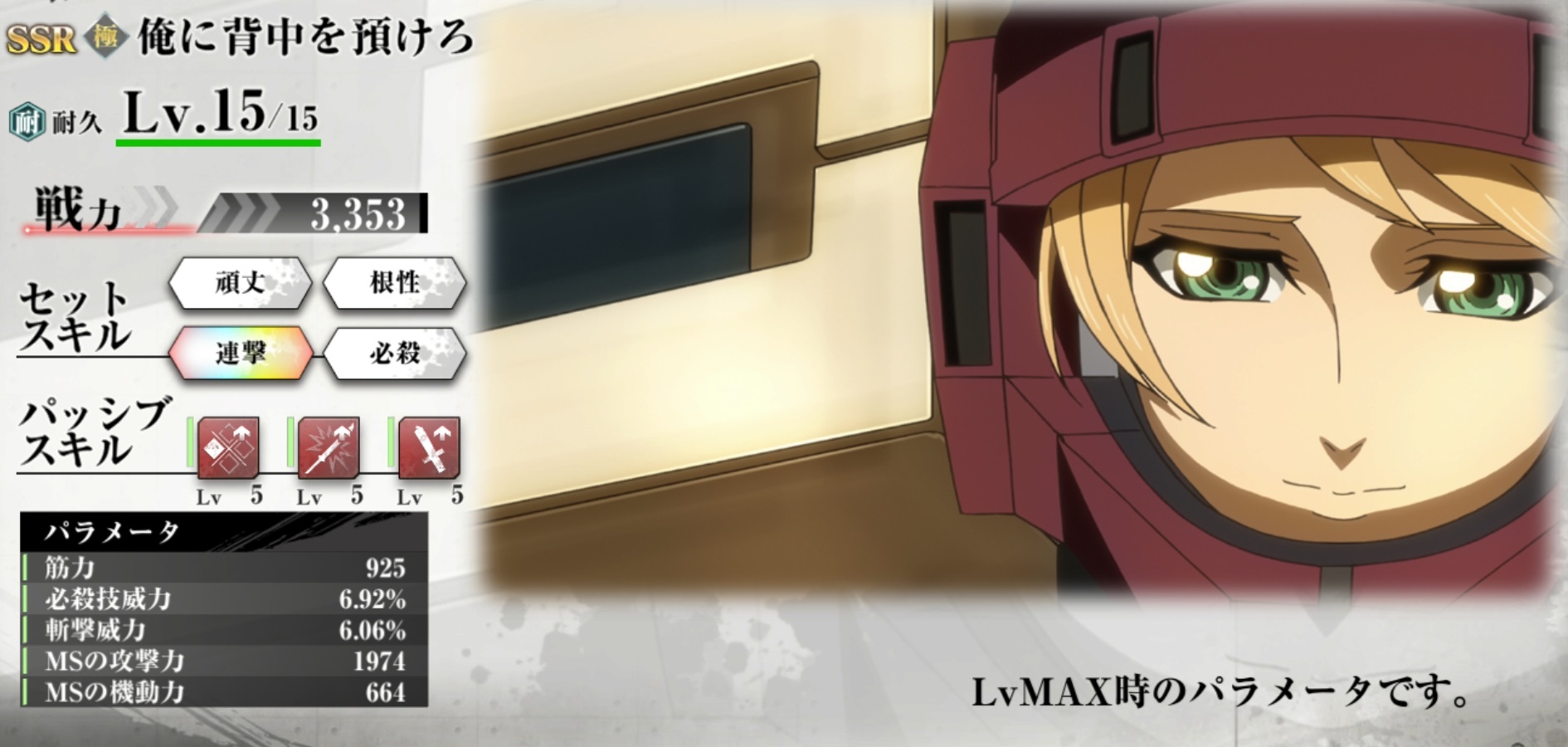 | レアリティ | SSR | セットスキル1 | 頑丈 |