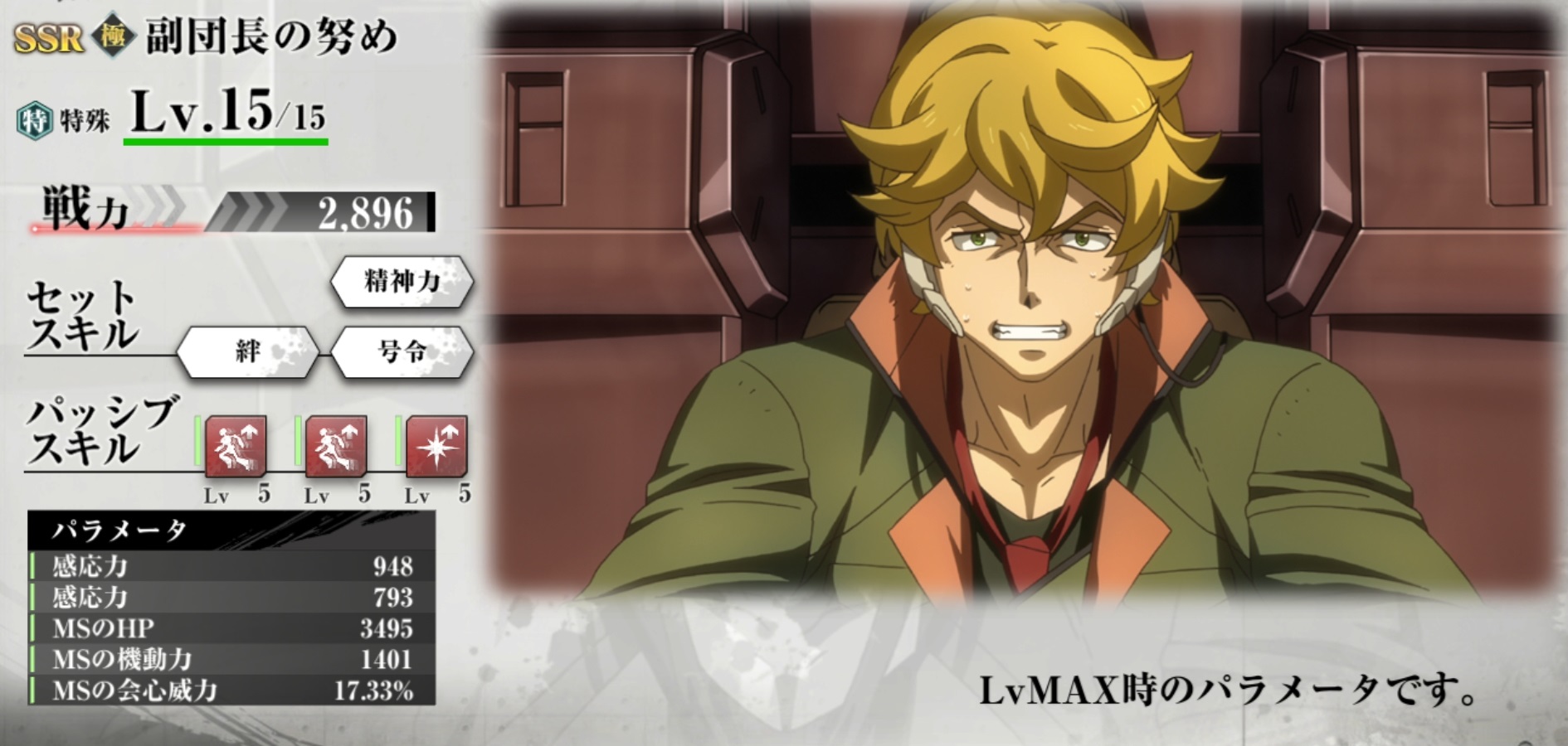 | 戦力 | 2,896 | セットスキル3 | 号令 |