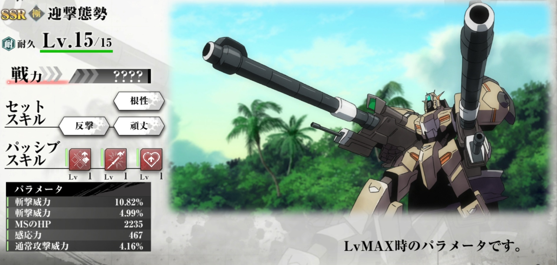 | 戦力 | ???? | セットスキル3 | 頑丈 |