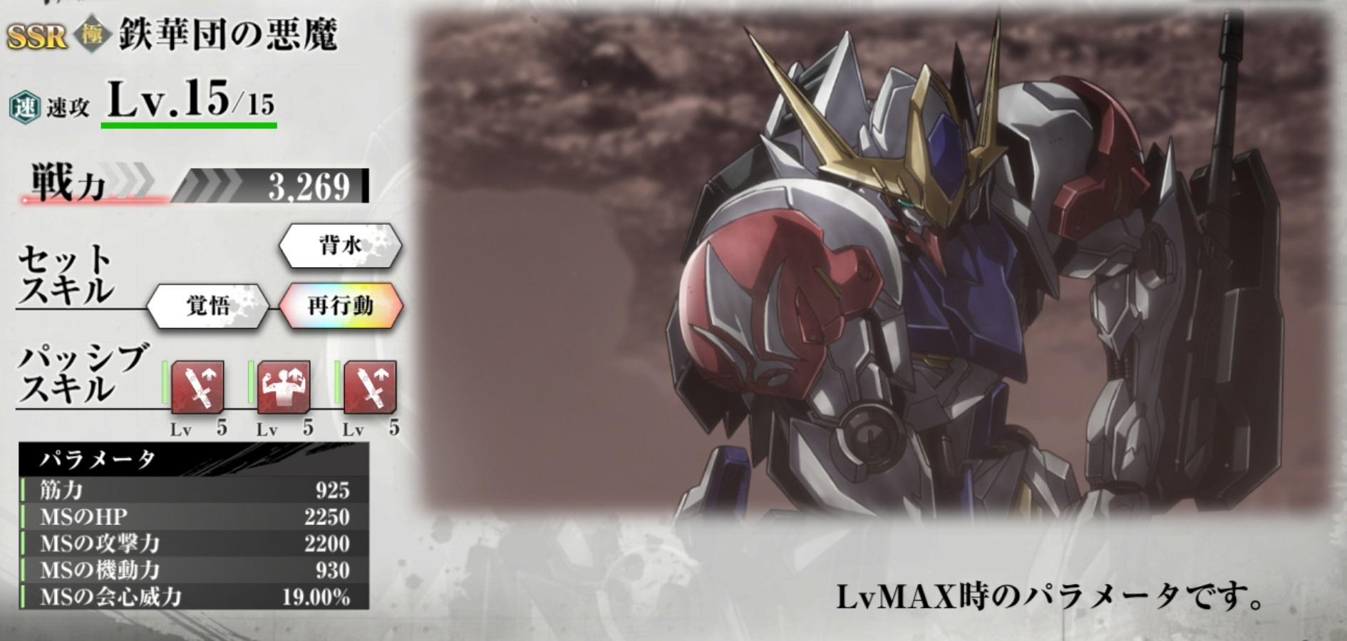 | 戦力 | 3,269 | セットスキル3 | 再行動 |