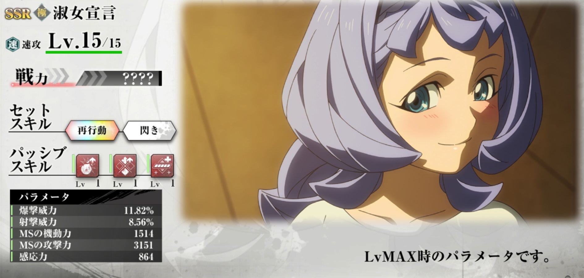 | レアリティ | SSR | セットスキル1 | 再行動 |